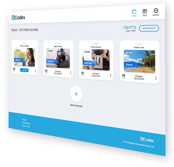 Redeemable in 85+ countries for merchandise, virtual rewards, retail gift cards, hotels, travel, experiences, event tickets, and mobile top-up! Purchase Gift Codes in the currency of your choice through our built-in converter and send them around the world with secure, encrypted code delivery.